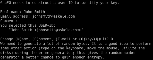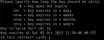 In order to create a key pair type in terminal the following: gpg –full-generate-key